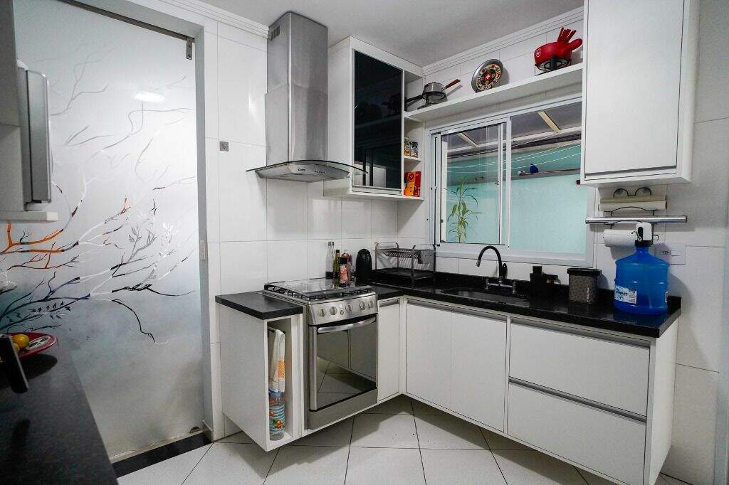 Apartamento todo mobiliado à venda de baixo condomínio na Vila Assunção, Santo André com; 3 dormitórios sendo uma suíte com sacada envidraçada, sala dois ambientes com porta de vidro jatiado, banheiro social com box de vidro, cozinha, área de serviço e quintal com teto retrátil e 02 vagas cobertas e fixas. Todo em porcelanato com acessórios de qualidade, portas e janelas em alumínio.