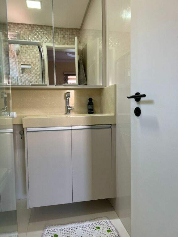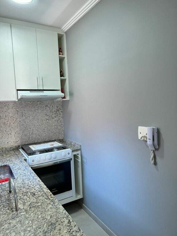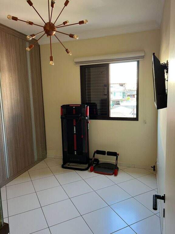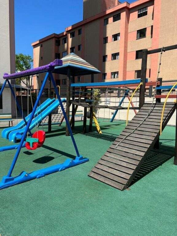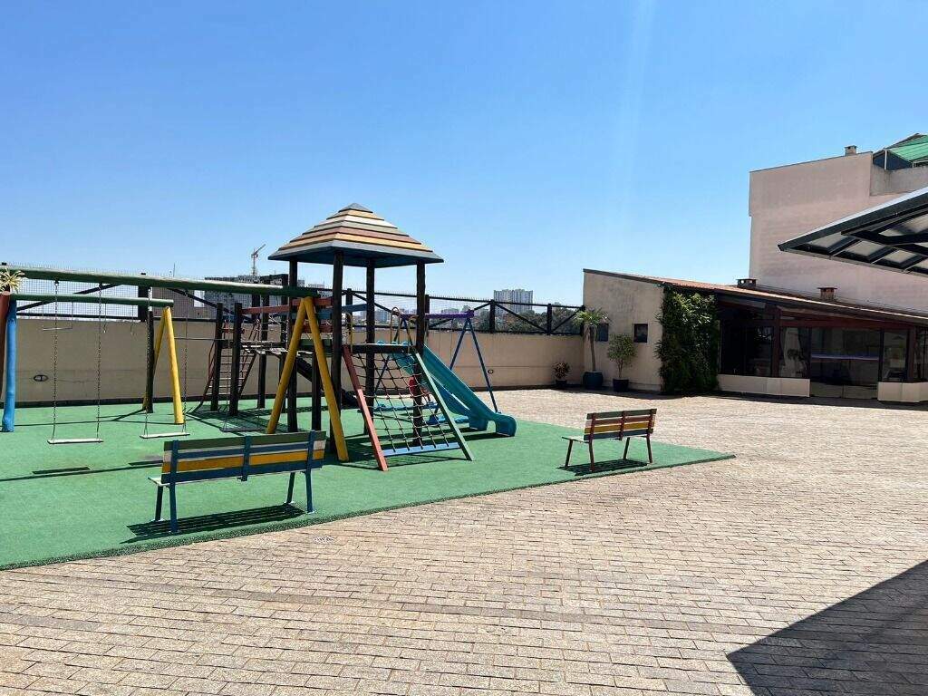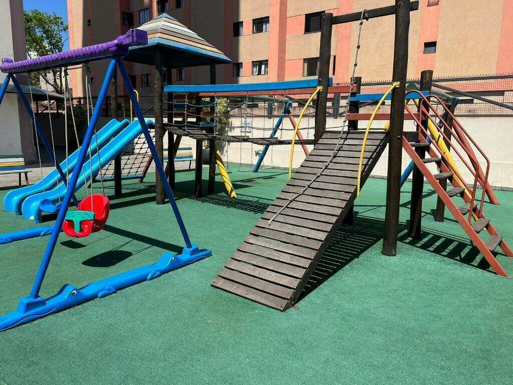 Possui 02 vagas de garagem coberta, churrasqueira, playground, sala ginástica, salão de festas e segurança com monitoramento 24 horas.