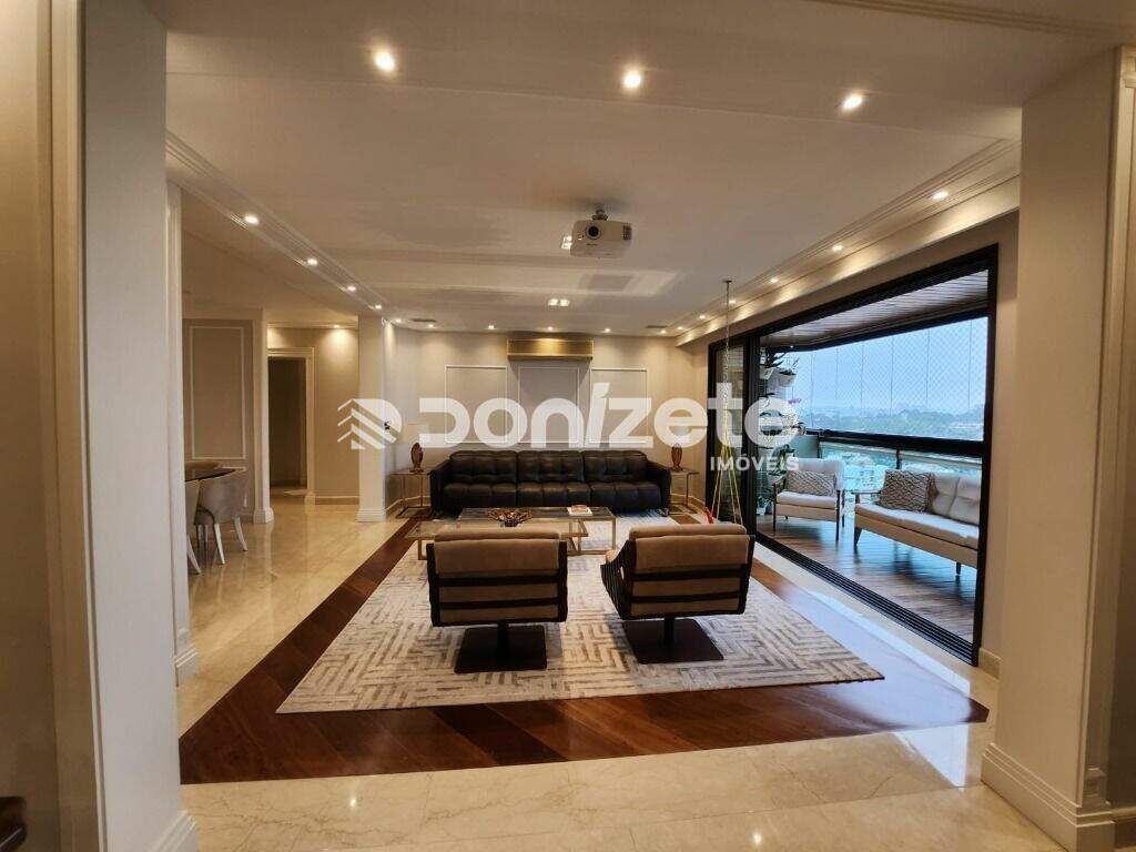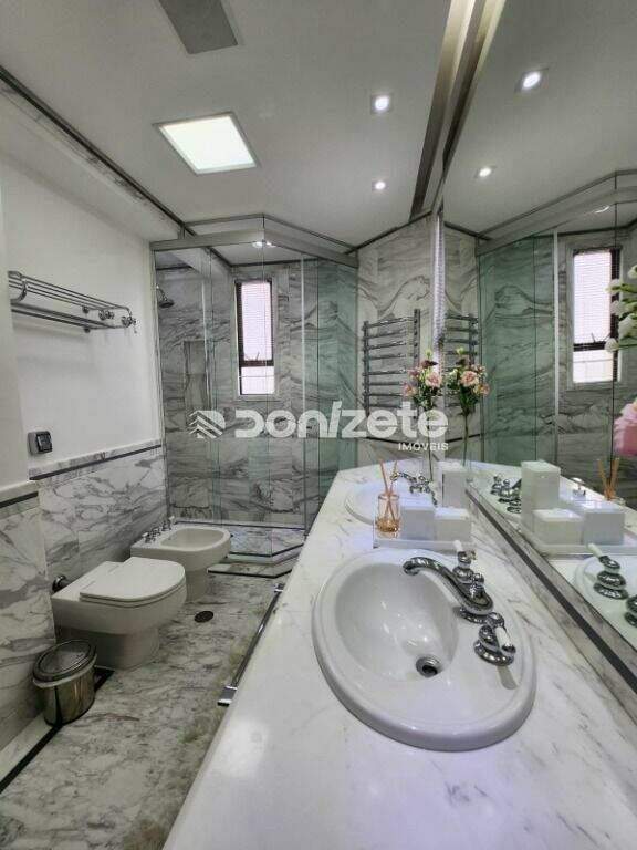 Apartamento Alto Padrão para venda na Vila Bastos em Santo André Automatizado, decorado e mobiliado com requinte e luxo, pronto para morar!!São 290 m² de área útil sendo 4 dormitórios, 2 suítes, lavabo - 4 varandas com jardim - 5 vagas de garagem e depósito no subsolo - dependência de empregada.Um dos edifícios ícones da região, vista deslumbrante, preservada e privativa para as cidades de Santo André, São Bernardo e vizinhança, podendo avistar Pico do Jaraguá e Av. Paulista.Condomínio conta com área de lazer com 10 mil metros quadrados (atende apenas 52 famílias). Área de lazer completa com quadra de tênis, ginásio poliesportivo, quadra de squash, academia, salão de jogos, piscina..etc..Elevador social panorâmico e Hall social e serviço privativos.Som ambiente e internet na casa toda.Hall de serviço, cozinha e lavanderia em mármore branco polar com detalhes em mármore azul Bahia.Ilha de cozinha com fogão 6 bocas Lofra e exaustor Suxxar e banquetas italianas Magis.Planejados de cozinha e lavanderia Kitchens.Hall social, sala de jantar , chapelaria e espaço social em mármore Botticino (italiano).Sala de cinema com home teather e projetor.Portas maciças laqueadas com almofadas e maçanetas Colombo (italianas) .Persianas Hunter Douglas nas salas, dormitórios e closets ( incluindo blackouts).Ar condicionado nos dormitórios e salas.Dormitórios com Piso de madeira Indusparquet e closets Ornare.Banheiros em mármore Sivec (grego) com Metais Deca e aquecedor de toalhas.Com sede em Santo André, A Donizete Imóveis está presente em todo ABC há mais de 30 anos, ajudando pessoas a realizarem o sonho de conquistar o seu primeiro imóvel. Conheça nossa imobiliária, nós temos mais de cinco mil imóveis ativos cadastrados em nosso banco de dados e corretores profissionais especializados na região para te ajudar a encontrar o seu imóvel ideal.