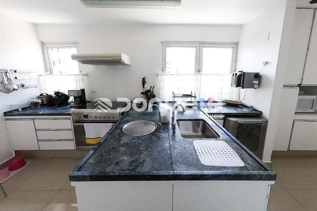 Fino acabamento em porcelanato, e assoalho de madeira, móveis embutidos, cozinha com ilha planejada e armários na área de serviço.