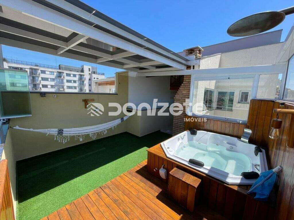 Imóvel a venda no Bairro Santa Maria em Santo AndréCom uma das melhores plantas do prédio, considerado, nascente e poente ( sol o dia todo) com ótima ventilação conta com um total de 86 m², Toda no piso porcelanato, Cozinha americana ampla com móveis planejados, Sala com acabamento em ripas na parede, 2 dormitórios, ambos com guarda roupa planejado, 1 wc social e 1 lavabo, Acesso a Cobertura por escada interna bem localizada, sem roubar espaço da cozinha.Cobertura com amplo espaço Gourmet c/ Churrasqueira de tijolo mesclado, pia em granito, possui um amplo mezanino, grama sintética, deck com chuveiro e uma maravilhosa jacuzzi com cascata, parte externa toda em telhado de vitro retrátil com película anti térmica e janela principal em vitro retrátil.Condições de pagamento - A vista, financiamento e FGTS.Com sede em Santo André, A Donizete Imóveis está presente em todo ABC há mais de 30 anos, ajudando pessoas a realizarem o sonho de conquistar o seu primeiro imóvel. Conheça nossa imobiliária, nós temos mais de cinco mil imóveis ativos cadastrados em nosso banco de dados e corretores profissionais especializados na região para te ajudar a encontrar o seu imóvel ideal.