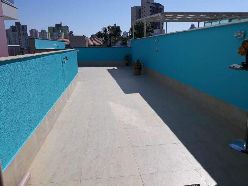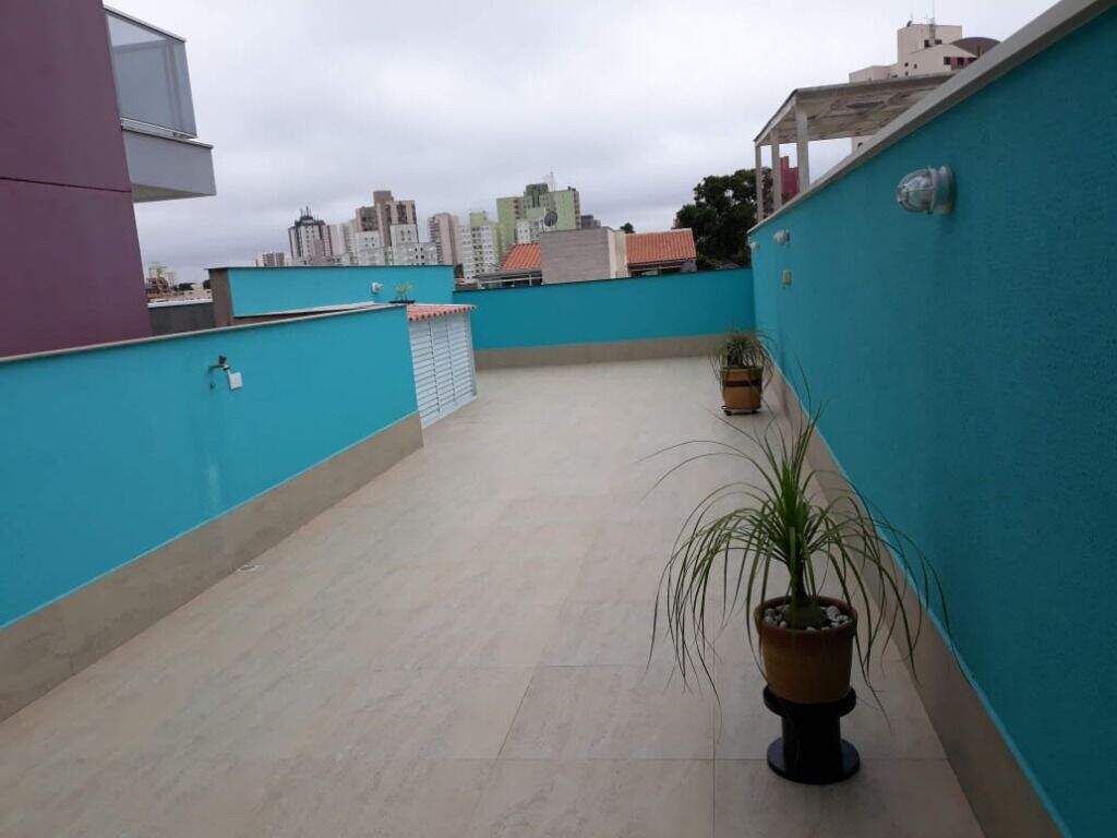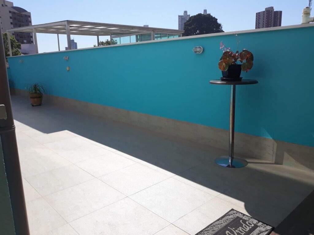 Cobertura para venda na Vila Scarpelli em Santo André, 145m2a/u (72,5+72,5 ) 03 dormitórios sendo 01 suíte com sacada, amplas acomodações todos os ambientes bem arejados(luz natural), banheiro social, sala para 02 ambientes, cozinha planejada, acesso interno para a cobertura, churrasqueira e pia, com fechamento em vidro, 01 vaga de garagem. Excelente localização, próximo a Rua Andaraí, fácil acesso a Av. Higienópolis e Av. Portugal. Agende a sua visita.