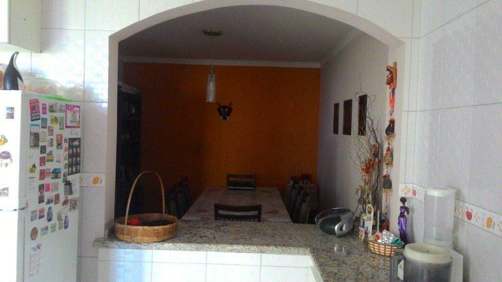 Sobrado 273m² de área construída, com 02 dormitórios, sala ampla para 2 ambientes com sanca e gesso, sala de estar integrada com a cozinha com abertura com balcão passa-prato em mármore, banheiro social, lavanderia, 02 suítes, uma delas com closet.